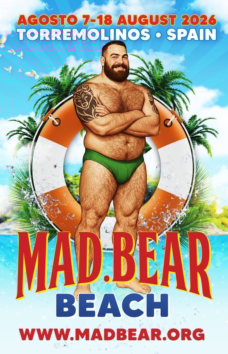 • 16h-18h: Recogida de Packs MAD.BEAR BEACH 2025. HOTEL RITUAL, Calle Brasil, 2.• 17h-22h: EDEN BEACH CLUB (Bajondillo Gay area). ENTRADA LIBRE.
